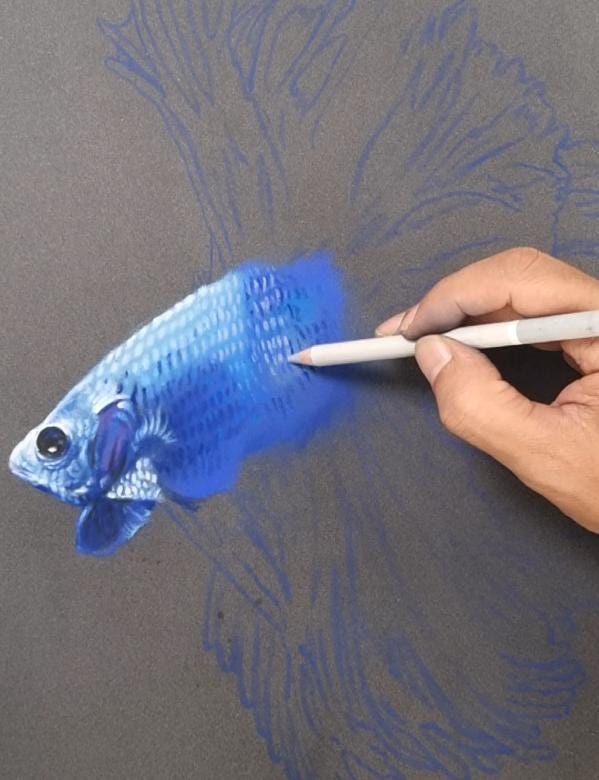 Blue Betta Fish, Giclée Print, Sure Color on Hahnehmuehle Cotton Paper, William turner, 190gsm